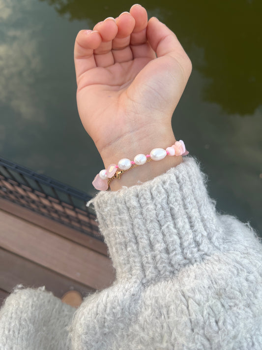 “Pearl” Luxe Zoetwaterparel Armband Roze